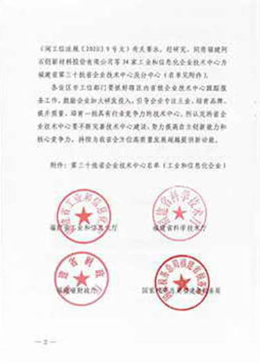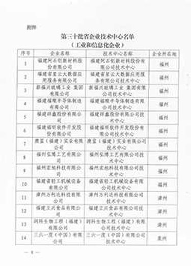 2020年12月24日由福建省工業(yè)和信息化廳、福建省科學(xué)技術(shù)廳、福建省財政廳、國家稅務(wù)總局福建省稅務(wù)局、國家稅務(wù)總局廈門市稅務(wù)局、福州海關(guān)、廈門海關(guān)認(rèn)定潤科生物工程(福建)有限公司技術(shù)中心為“福建省企業(yè)技術(shù)中心”。