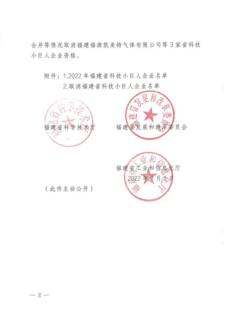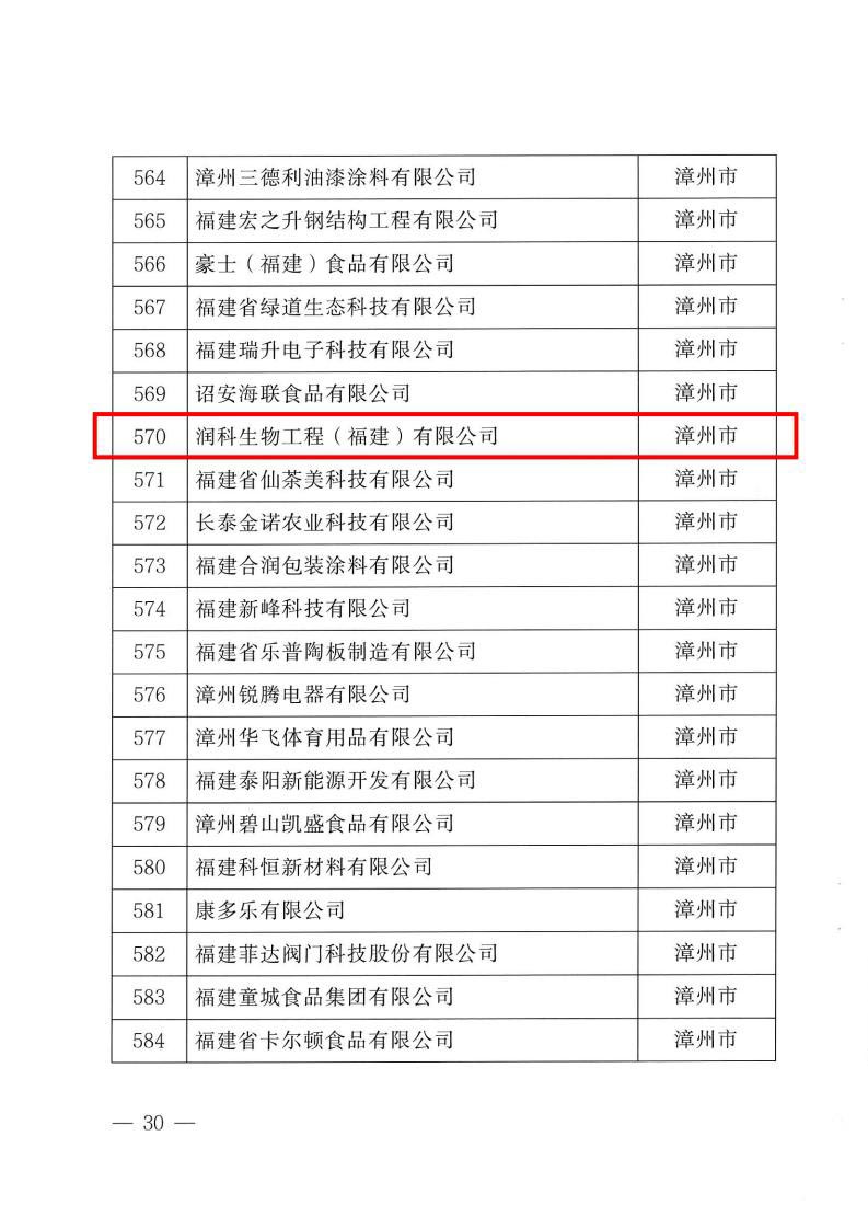 ? 2022年7月1日由福建省科學(xué)技術(shù)廳、福建省發(fā)展和改革委員會、福建省工業(yè)和信息化廳認(rèn)定潤科生物工程(福建)有限公司為福建省“科技小巨人”企業(yè)。